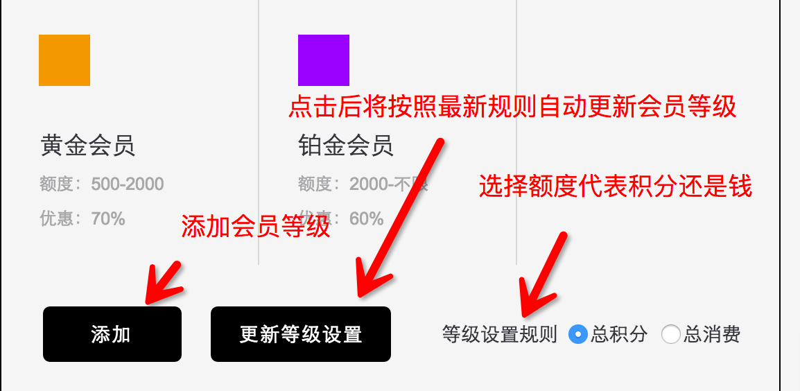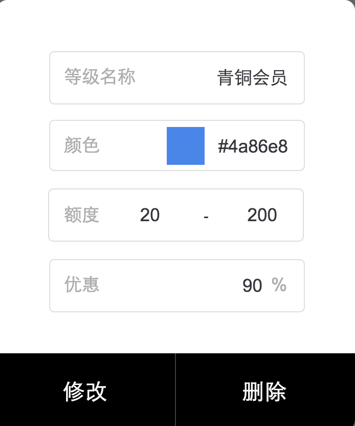 會員等級的編輯,點開某個會員等級就會出現(xiàn)下面的彈窗并進行修改
