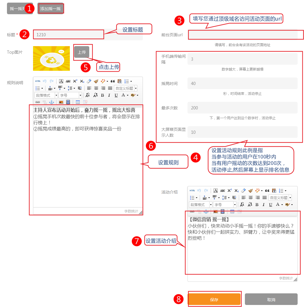 2、點擊添加搖一搖活動內(nèi)容。