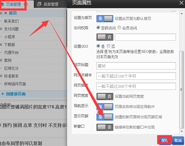在頁面管理中找到對應(yīng)的頁面勾選取消頁腳顯示即可。