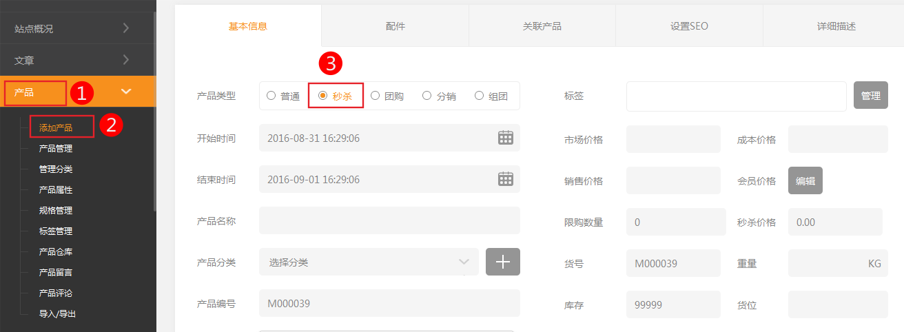 Pc版插件(適用版本Pc營銷版手機營銷版)本小節(jié)共包含5點。1、依次點擊產(chǎn)品-》添加產(chǎn)品-》產(chǎn)品類型選擇添加產(chǎn)品2、商品應(yīng)該包括那些內(nèi)容呢?可能最基本的應(yīng)該是以下幾點:商品類別:一件商品必須屬于一個類別,這個便于管理所以可能添加分類往往是第一步的。商品名稱:一件商品當(dāng)然也是必須有這個商品的名稱商品圖片:只有精美的圖片,才能讓買家對你的商品產(chǎn)生足夠的興趣。商品價格:要出售商品,當(dāng)然也必須給這個商品指定一個價格。商品規(guī)格:是依據(jù)顧客的購買習(xí)慣而獨立出來的一種商品的特殊屬性;商品規(guī)格不同,可能會有不同的價格!開啟