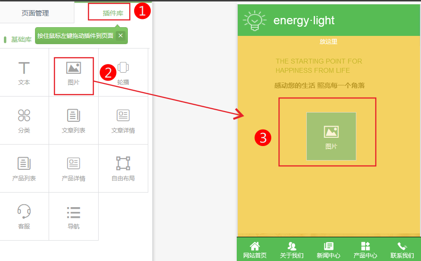 小程序插件-圖片1.依次點擊插件庫--選中“圖片”插件拖拽到您需要的位置。2.配置屬性設(shè)置如:設(shè)置透明度,點擊事件等。3.設(shè)置點擊文本內(nèi)容后的事件,可以是點擊跳轉(zhuǎn)頁面。4、設(shè)置圖片的樣式、可以設(shè)置背景、及邊框。