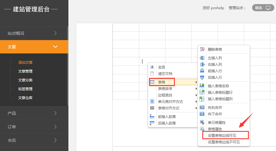 選中表格后點(diǎn)擊右鍵依次點(diǎn)擊表格-》設(shè)置表格邊框可見