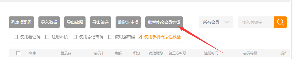 可以使用批量修改會(huì)員等級(jí)功能修改