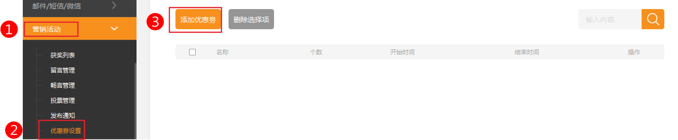 優(yōu)惠券就是在用戶進(jìn)行消費(fèi)時(shí)可以用來代替部分現(xiàn)金的一種貨幣表現(xiàn)形式,也叫代金券。通過使用優(yōu)惠券,可以讓用戶消費(fèi)時(shí)少支付一定數(shù)額的款項(xiàng),從而刺激用戶進(jìn)行消費(fèi)。對(duì)用戶來說,優(yōu)惠券表現(xiàn)的形式一般是一串字母+數(shù)字的組合。一般情況下,此類優(yōu)惠券成本比較少,可以吸引顧客第一次購(gòu)物時(shí)就可以立即使用!(注意:優(yōu)惠劵和優(yōu)惠碼同時(shí)都有時(shí),只能二選一使用其中一個(gè))例如:國(guó)慶節(jié),為吸引用戶來消費(fèi),提供一個(gè)優(yōu)惠券進(jìn)行廣告,在一定期限內(nèi),任何注冊(cè)會(huì)員均可使用此優(yōu)惠券,購(gòu)物滿300元立減10元!1.依次點(diǎn)擊營(yíng)銷活動(dòng)-》優(yōu)惠劵設(shè)置-》添加優(yōu)