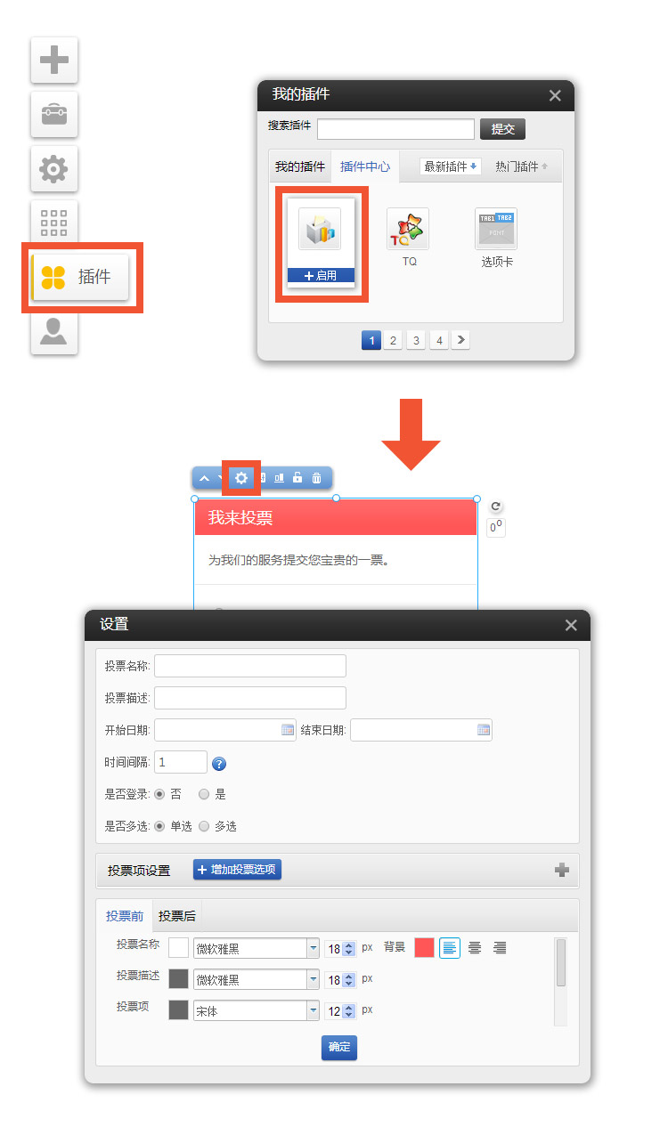 PC和手機(jī)版投票插件(適用版本基礎(chǔ)版、標(biāo)準(zhǔn)版、營(yíng)銷版)投票插件支持設(shè)定投票選項(xiàng):?jiǎn)芜x或多選支持設(shè)定時(shí)間間隔,可設(shè)置每個(gè)IP僅允許投票一次支持設(shè)定投票前和投票后樣式投票選項(xiàng)可以最多可以添加50個(gè)時(shí)間間隔的數(shù)字是表示第幾天后才能可再投票,填寫數(shù)字0表示這個(gè)ip只能投票一次。設(shè)置登陸后投票可以在后臺(tái)查看到是那個(gè)會(huì)員頭的票,ip多少,并全不再限制投票ip.