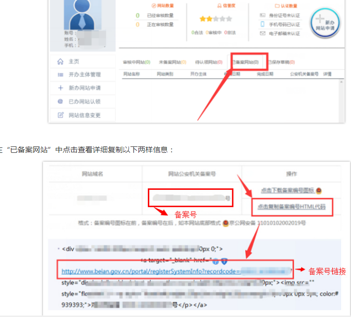 首先在獲取代碼然后按教程填寫備案號和鏈接