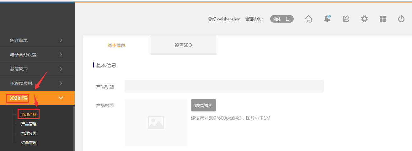 適用版本手機(jī)營銷版pc營銷版注意(小程序不支持此功能,并且不支持營銷功能,如優(yōu)惠劵,積分)一、功能介紹購買后能隨時在線閱讀的文章,適合文字和圖片的付費(fèi)內(nèi)容二、后臺操作步驟1、登錄網(wǎng)站后臺。從知識付費(fèi)->添加產(chǎn)品進(jìn)入編輯頁面。2、填寫基本信息1.填寫產(chǎn)品標(biāo)題、產(chǎn)品封面、試看內(nèi)容、詳細(xì)內(nèi)容、分組,設(shè)置售賣方式(可以是免費(fèi)或付費(fèi))以及產(chǎn)品狀態(tài)。2.上架設(shè)置當(dāng)您設(shè)置立即上架,該產(chǎn)品在發(fā)布時即可在知識付費(fèi)列表內(nèi)顯示;當(dāng)您設(shè)置了上架后隱藏,該產(chǎn)品在知識付費(fèi)列表中不顯示。添加后在知識付費(fèi)-》產(chǎn)品管理中展示如下三、課程發(fā)