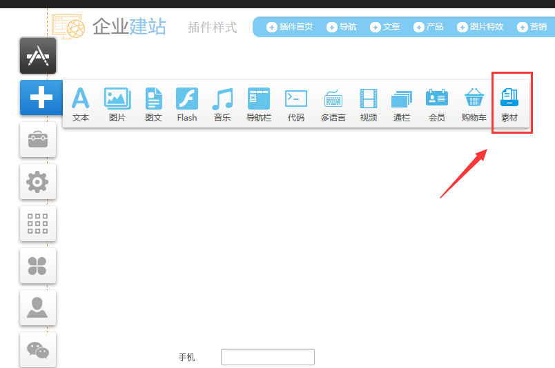 1.在建站前臺,“添加-》選擇“素材”模塊。目前僅支持圖文展示,此功能預設(shè)了兩種風格的編排,用戶可以預覽或者直接添加到建站中,再具體調(diào)整其中的每一個模塊。