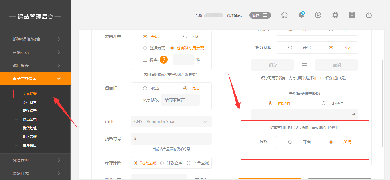 需營銷版本及以上在后臺,“電子商務(wù)設(shè)置”-“交易設(shè)置”中,有一個退款的操作,當開啟該操作時,在前臺用戶頁面可以直接申請退款,后臺消息提醒中也會有相應的提示,點擊“查看”即可(注:“退款”默認為關(guān)閉狀態(tài)),如圖所示:在線支付的訂單才能退款2.手機版與PC版操作一致,這里不做贅述。已收貨的訂單也可以申請退款點擊查看進入訂單詳情即可看到退款按鈕。如圖所示:1.支付后點擊退款余額和積分是否退回支付后,后臺點擊退款,余額和積分和優(yōu)惠劵是退回的。2020.11.12營銷版本(包含小程序)支持訂單退款新增微信原路退回功能1.在