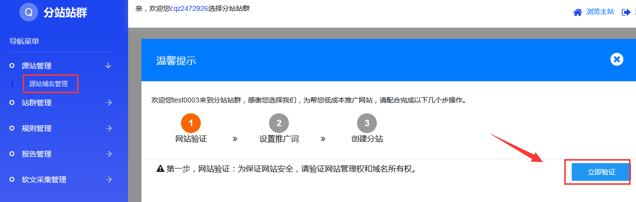 重要:為保證推廣效果務(wù)必做到以下要求。1.首先最大化分站2.添加關(guān)鍵詞及替換詞注意關(guān)鍵詞需要在您的主網(wǎng)站是有的詞,請保持這些詞在網(wǎng)站上出現(xiàn)的密度在2%~8%最佳3.檢測源網(wǎng)站的關(guān)鍵詞、標(biāo)題、描述及seo信息是否合理4.第一時間配置軟文采集管理,注意一個規(guī)則放置一個關(guān)鍵詞,做多條采集規(guī)則。5.在源域名網(wǎng)站放置友鏈地圖建議同時添加一些分站作為友情鏈接6.檢查分站中的seo設(shè)置是否合理。完整的云分站使用步驟是什么樣的?第一步:驗證域名-+創(chuàng)建分站->設(shè)置默認(rèn)友情鏈接-→查看友鏈鏈輪是否正常->添加源站等--些外鏈作為云分站的友情