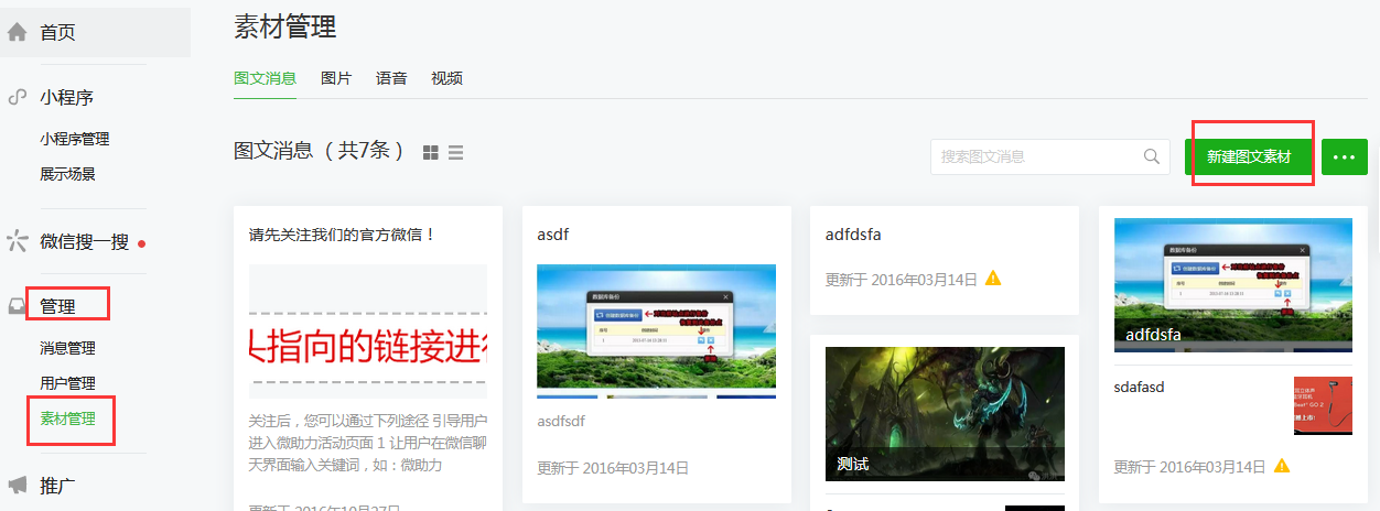 微信公眾號一鍵關(guān)注頁面制作及鏈接獲取方式微信公眾賬號的運營方法有很多種,隨著各種營銷的誕生,也會有一些不符合規(guī)范的行為,所以官方聲明不容許有誘惑行為的點擊,但我們有一種更好的方法,可以使用戶能一鍵關(guān)注你的微信公眾。1、登錄公眾號https://mp.weixin.qq.com,點擊管理→素材管理→新建圖文素材 2、按照下圖所示,填寫內(nèi)容:標(biāo)題:請先關(guān)注我們的官方微信!作者:留空(不要寫)封面請上傳這張圖正文:關(guān)注后,您可以通過下列途徑引導(dǎo)用戶進入微助力活動頁面1讓用戶在微信聊天界面輸入關(guān)鍵詞,如:微助力參加活動微信管理-微信