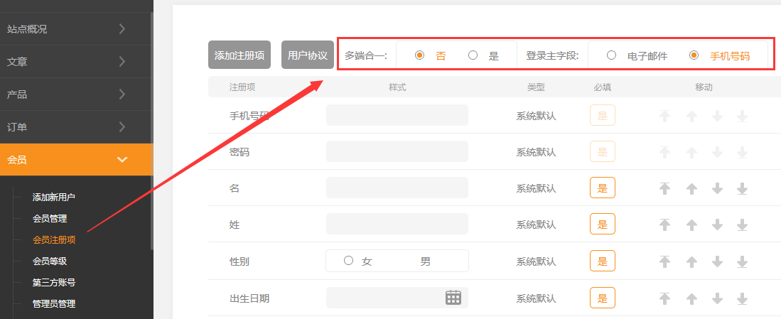 配置前建議在會員管理中取消驗證碼。否則客戶注冊時要錄入兩次驗證碼公眾號掃碼是在回調(diào)里面新增會員的,這里是無法實現(xiàn)多端合一的功能,建議關(guān)閉掃碼關(guān)注生成會員功能功能概述:目前建站中同一個用戶使用不同方式注冊/登錄賬號會生成完全沒有關(guān)聯(lián)的賬號,開啟本功能后將會使用手機號碼作為唯一字段,同一用戶使用任意方式注冊/登錄,只要綁定相同的手機號就會生成唯一賬號。(請確保已開通短信功能)注意:公眾號掃碼是在回調(diào)里面新增會員的,這里是無法走多端合一的在只能有客戶做選擇,放棄一個1.后臺配置1.1在建站后臺,“會員”-“會