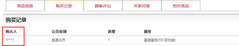 產(chǎn)品在下單購買訂單完成狀態(tài)顯示購買記錄購買人顯示邏輯默認(rèn)顯示會員的姓名中間用***代替如果沒有設(shè)置姓名則系統(tǒng)隨機(jī)顯示