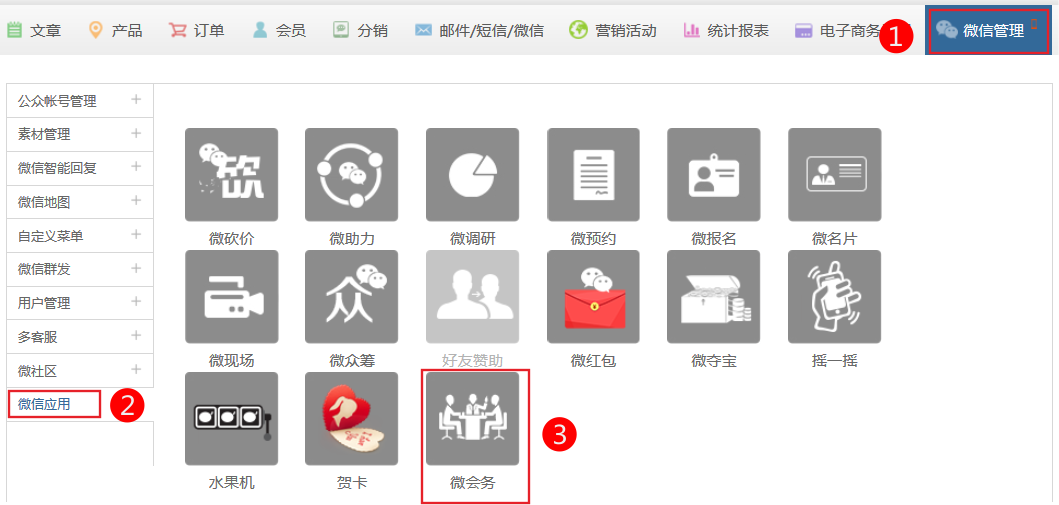 微會(huì)務(wù)適用版本手機(jī)營(yíng)銷版本注意需要認(rèn)證后的服務(wù)號(hào)支持微信貫穿整個(gè)會(huì)議管理過程,為現(xiàn)場(chǎng)會(huì)“加油”,在降低成本,提高效率的同時(shí),達(dá)到傳播更廣,互動(dòng)性更強(qiáng),參與度更高的目的。1、依次點(diǎn)擊電子商務(wù)-》微信應(yīng)用-》微會(huì)務(wù)2.點(diǎn)擊添加會(huì)務(wù)、設(shè)置獎(jiǎng)品,查看點(diǎn)贊、簽到等。3、錄入會(huì)務(wù)主題、主辦方logo、議題等信息4、點(diǎn)擊網(wǎng)站編輯-》在插件中心選中微會(huì)務(wù)插件-》然后拖拽到需要的位置。5、設(shè)置插件的樣式6、管理員在后臺(tái)--》電子商務(wù)-》微信應(yīng)用-》微會(huì)務(wù)-》點(diǎn)擊開始7、點(diǎn)擊可以切換到會(huì)務(wù)專員-》并且可以切換議題8、管理員在會(huì)議結(jié)果后可以抽獎(jiǎng)