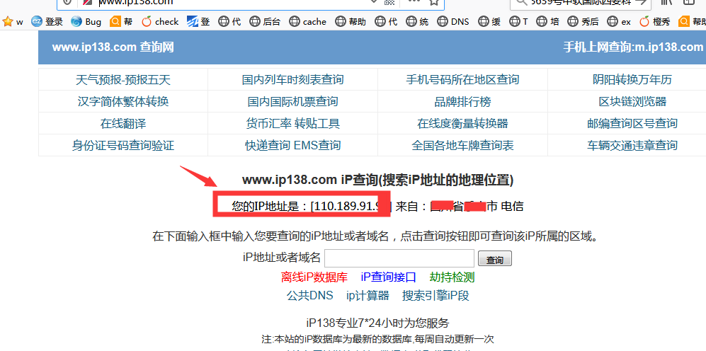 在瀏覽器訪問http://www.ip138.com/然后如下圖所示獲取ip即可(注意不需要錄入您的域名)